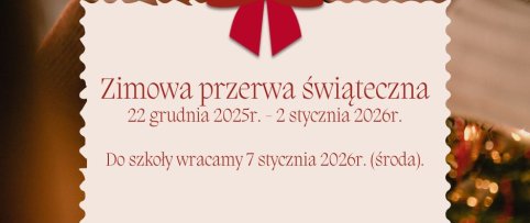 2025-12-19 ZIMOWA PRZERWA ĆWIÄTECZNA Przypominamy, ĆŒe w szkole obowiÄ zuje zimowa przerwa ĆwiÄ teczna dla uczniĂłw w dniach 22.12 â 06.01.2026r. Do szkoĆy wracamy w ĆrodÄ (7 stycznia 2026r.) po ĆwiÄtach! > czytaj dalej