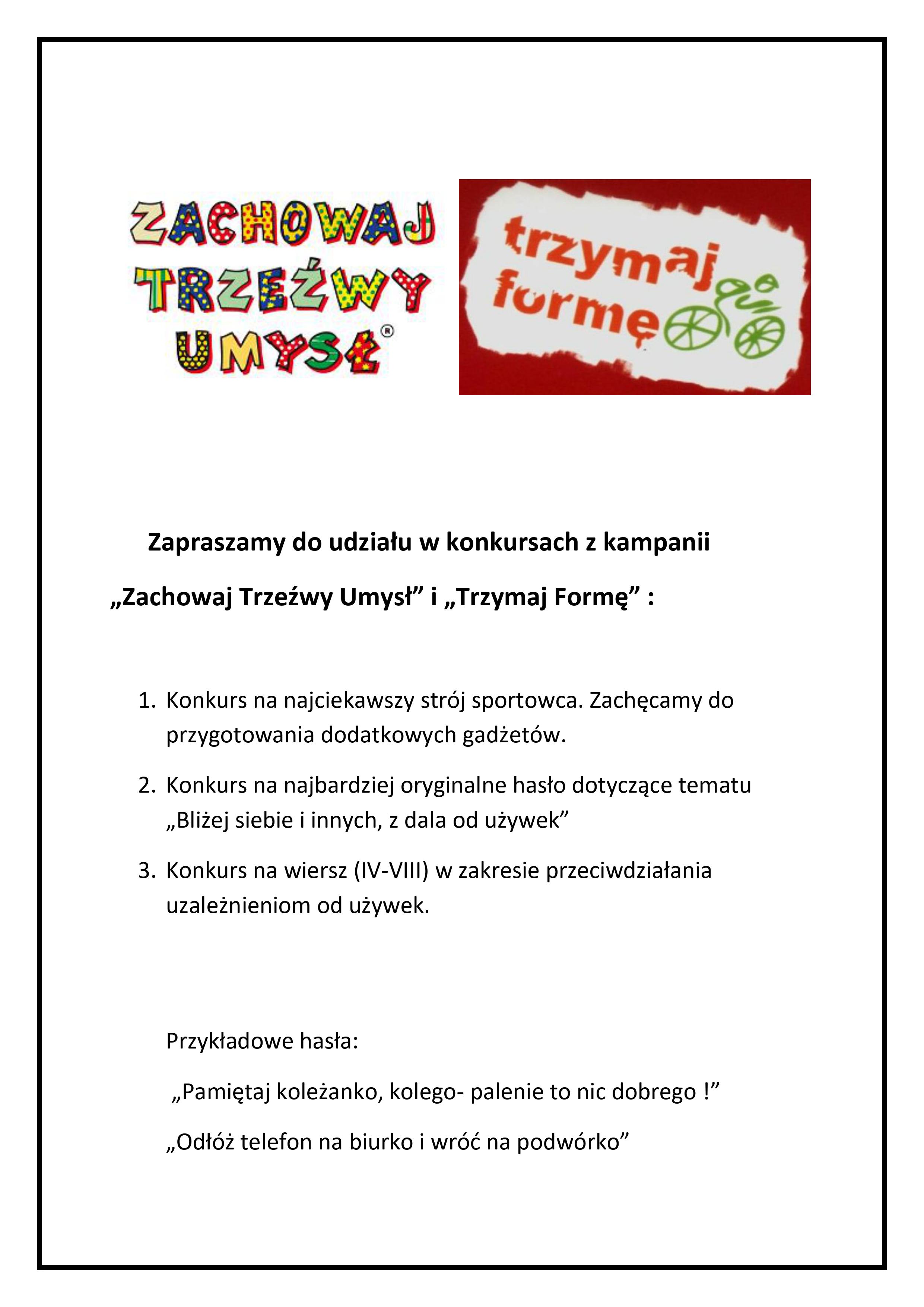 Konkursy w ramach kampanii ZACHOWAJ TRZEŹWY UMYSŁ i TRZYMAJ FORMĘ