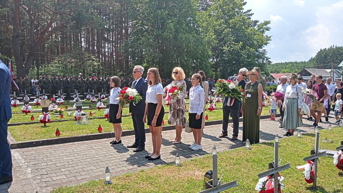 W niedzielę 27 czerwca 2021roku poczet sztandarowy naszej szkoły z delegacją uczniów, dyrektorem szkoły Panem Zbigniewem Sokalem oraz nauczycieli Panią Jolantą Zwolińską oraz Panią Renatą Surmacz uczestniczył w uroczystościach 77 rocznicy największego starcia zbrojnego partyzantów AK i BCH z Niemcami- Bitwy pod Osuchami. Po przemówieniu Wójta Gminy Łukowa Pana Stanisława Kozyry, uroczystej mszy świętej oraz apelu poległych dyrektor szkoły oraz uczniowie złożyli wiązankę biało - czerwonych kwiatów pod pomnikiem poległych partyzantów. Zwieńczeniem uroczystości była inscenizacja historyczna zorganizowana przez GRH " WIR". Zobacz zdjęcia.